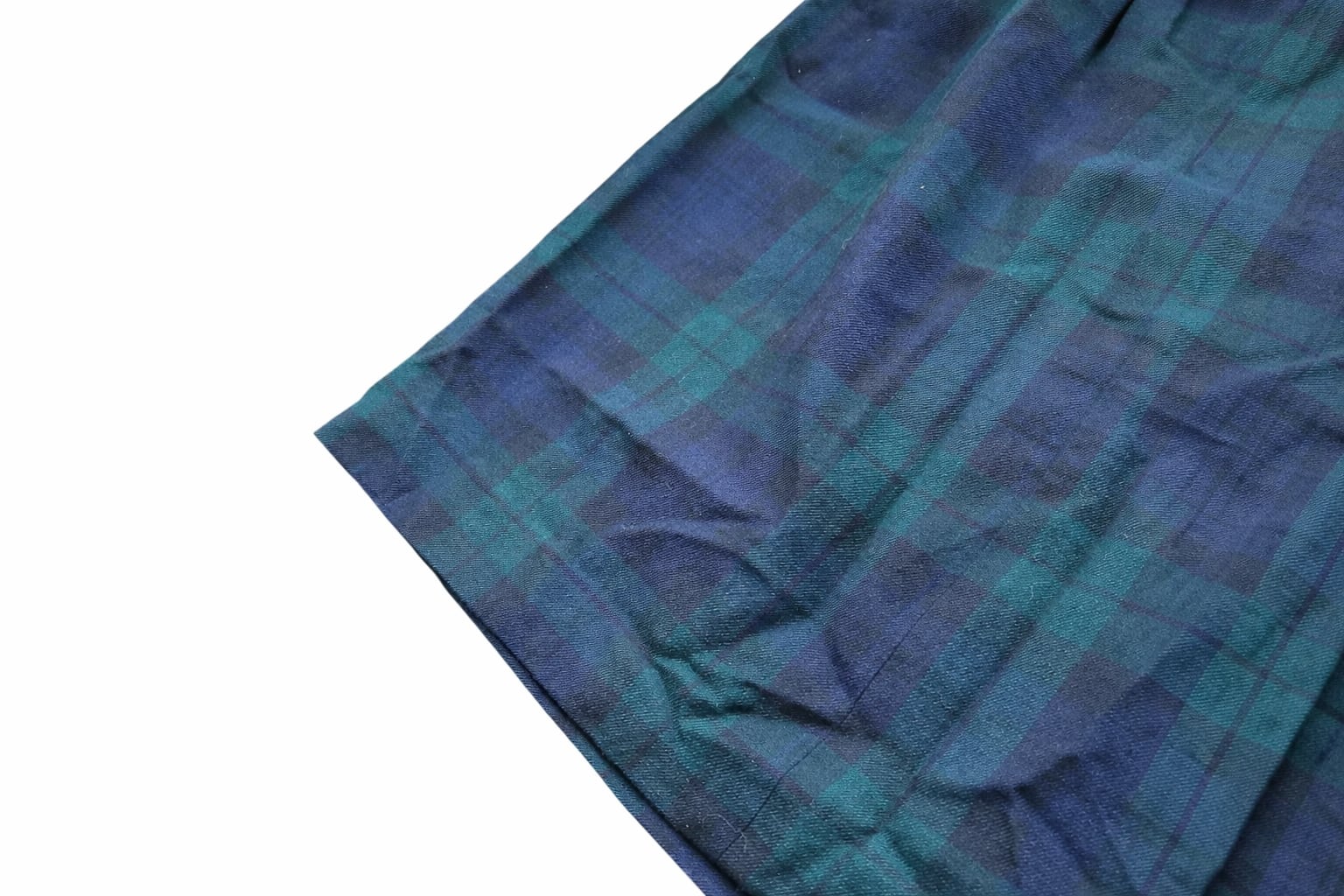 深いグリーンとネイビーが重なる、落ち着いたタータン。